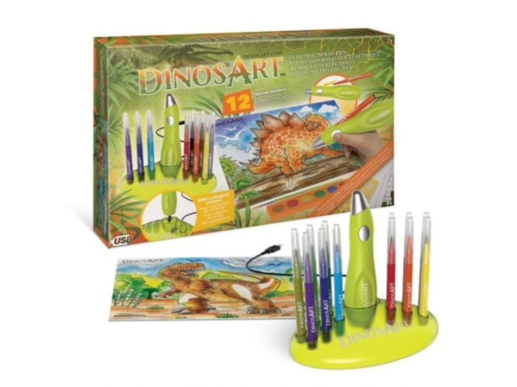 Obsah balení - elektrické airbrush pero, USB kabel, 12 speciálních fixů, 10 obrázků na vymalování, 2 archy šablon, 6 vodových barev a štětec. Nabíjení přes USB kabel.