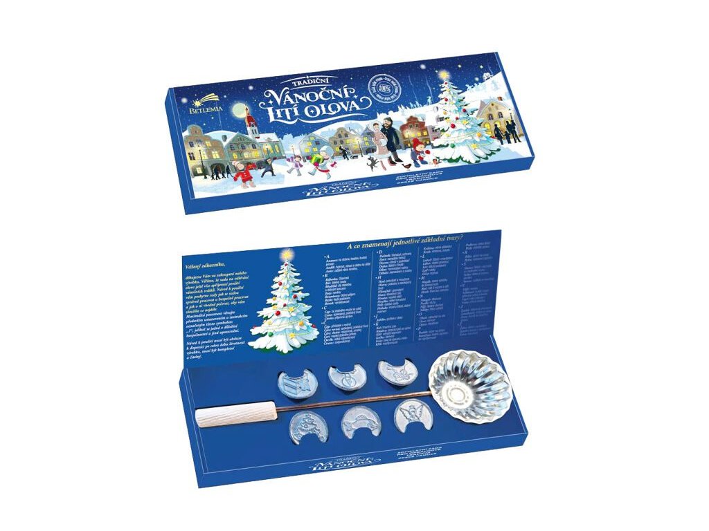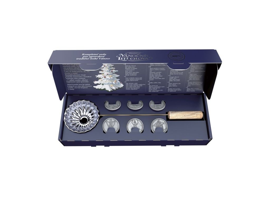 Vánoční lití olova. Česká ruční výroba. Navazuje na tradiční vánoční zvyk, kdy se z roztaveného kovu, odlitého do vody, hádalo, co koho v budoucnu čeká.