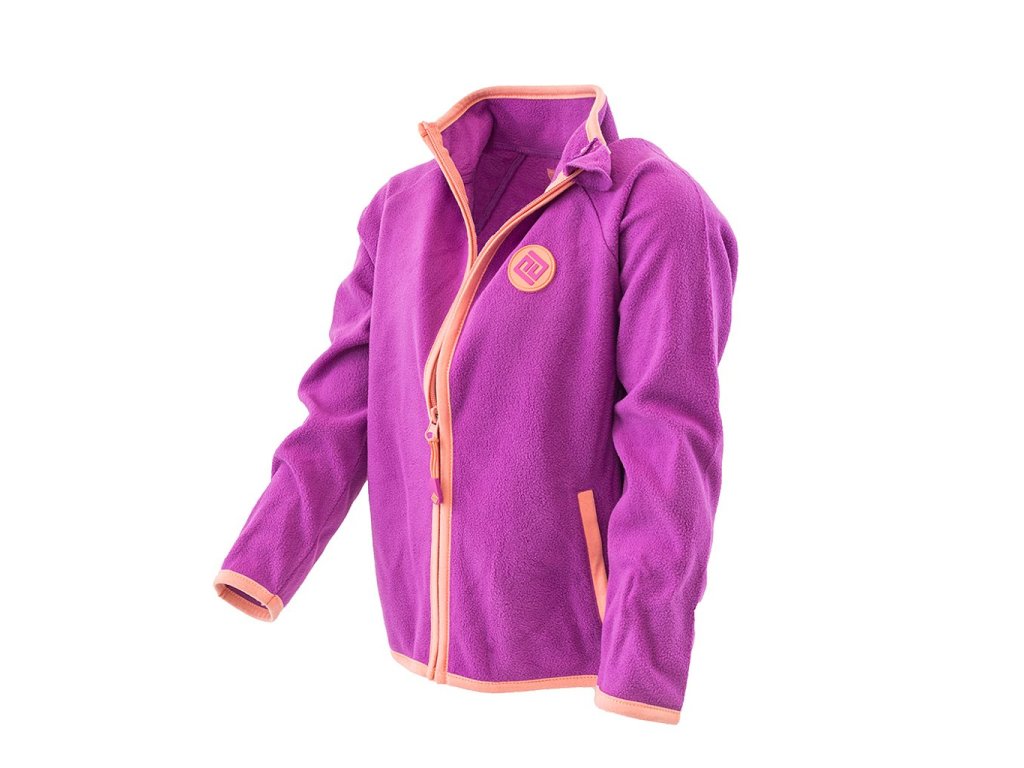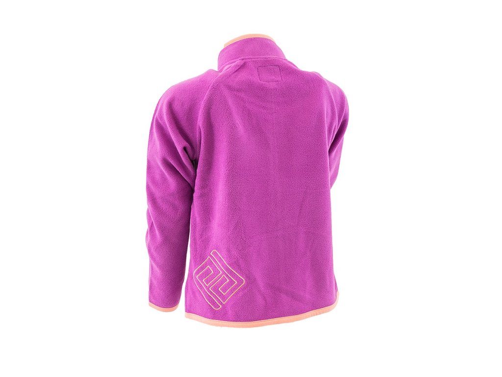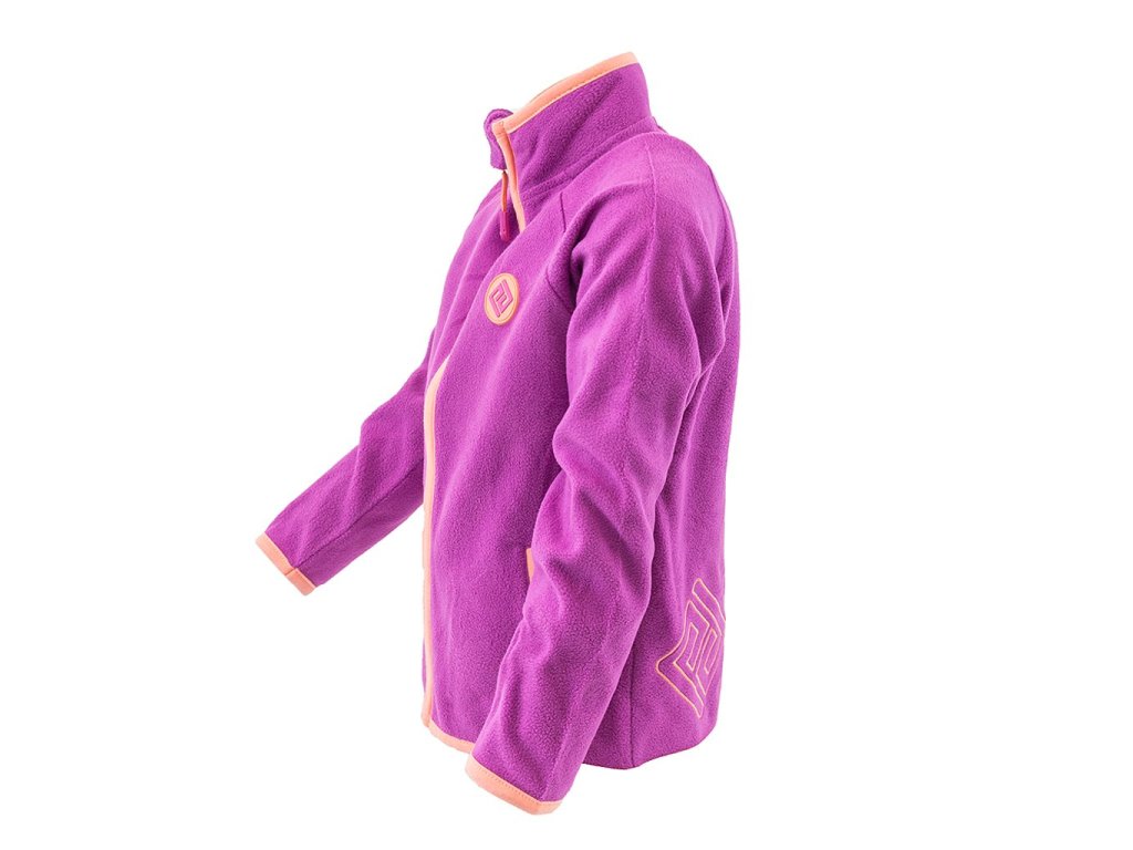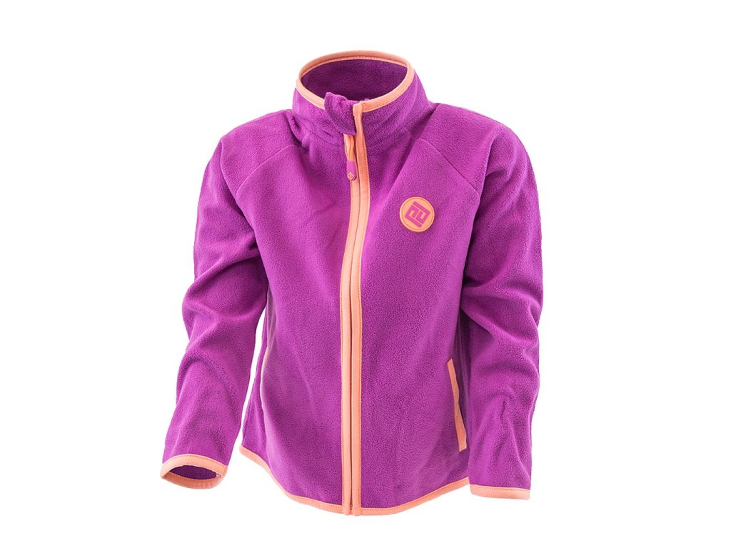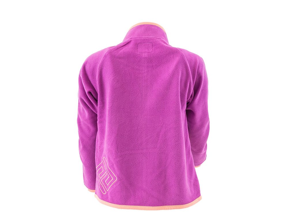 Dívčí propínací fleezová mikina. Stojací límec, dvě kapsy, barevné kontrastní lemy.