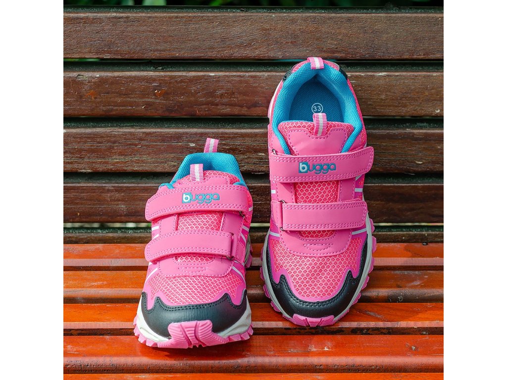 Velmi lehká vycházková obuv sportovního střihu značky Bugga, boty jsou lehké, byly použity kvalitní materiály, výborná konstrukce boty, moderní design, vyjímatelná stélka, zapínání na dva suché zipy. I v letních měsících velmi vzdušná.
