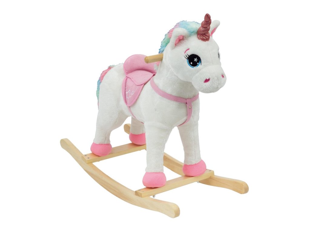 Roztomilý houpací jednorožec potěší všechny malé slečny, které toto zvířátko milují! Díky sedlu bude sezení na poníkovi pohodlné a o příjemnou zábavu se postarají zvukové efekty.