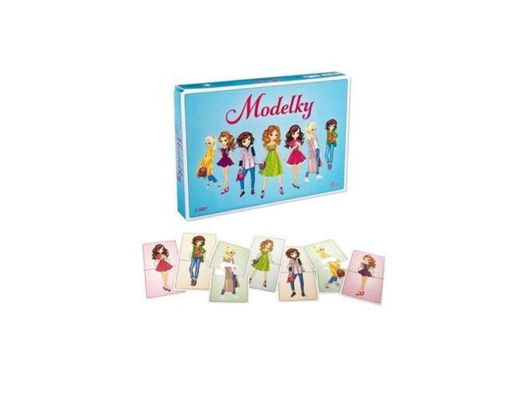 Soubor logických společenských her Modelky obsahuje 40 dělených karet.