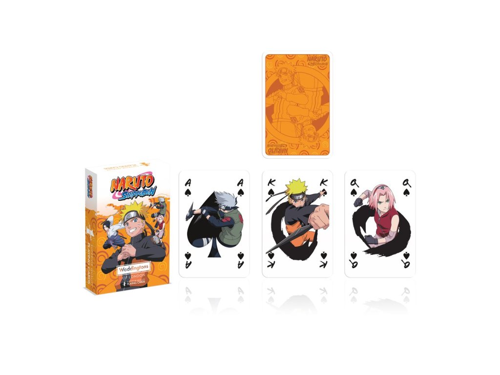 Hrací karty s motivem ze seriálu Naruto potěší každého fanouška! Zahrajte si s nimi třeba oblíbené karetní hry, jako je hra Kent nebo Pasiáns. Na krásné obrázky se nebudete moci vynadívat