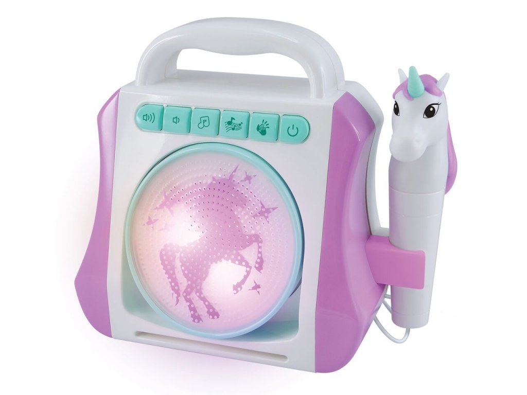 Parádní stylový karaoke box s mikrofonem pro všechny milovnice zpěvu a jednorožců!