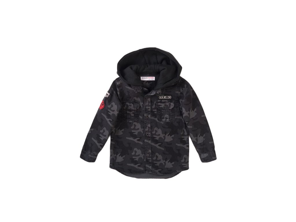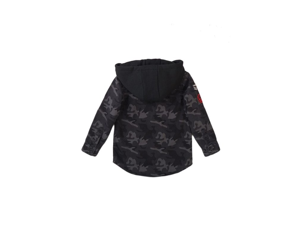 Košile chlapecká maskáčová s kapucí, Minoti, Stereo 8, šedá - 98/104