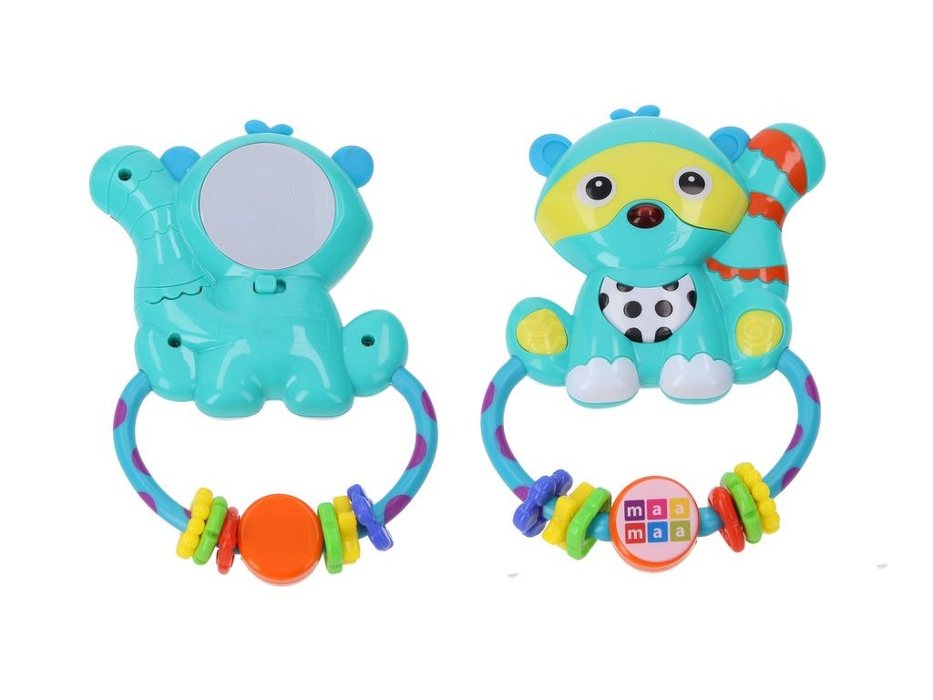 Medvídek mýval bude skvělým kamarádem pro vaše dítka už v postýlce. Díky veselým melodiím, své barevnosti a zrcátku na zadní straně upoutá pozornost prcků a vy si můžete užít chvilku "klidu". Baterie jsou součástí, nelze měnit.
