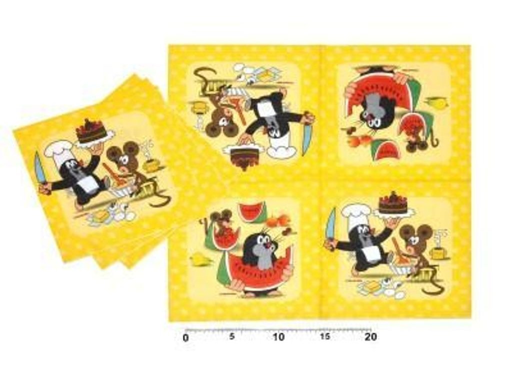 Takové ubrousky s Krtečkem udělají na každé párty velkou parádu. Potěší děti, které budou z ubrousků se svým kresleným hrdinou nadšeny. Můžete je použít i na jiné kreativní účely - např. na ubrouskovou techniku.