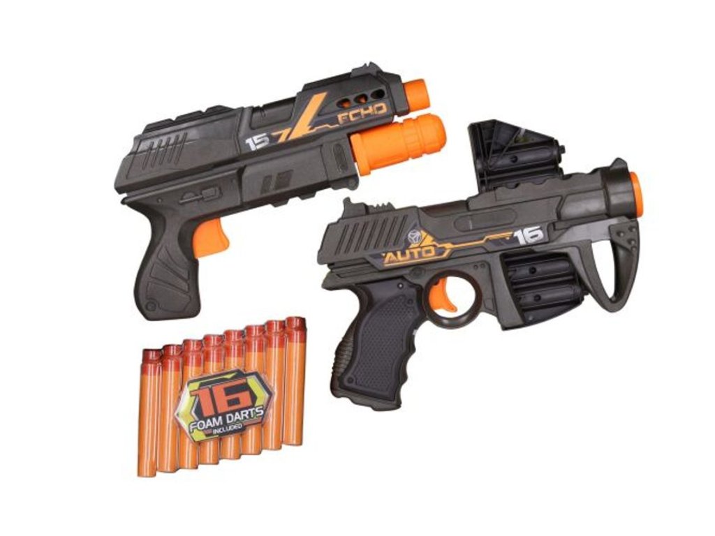 Balení obsahuje 2 pistole a 16 pěnových nábojů.
