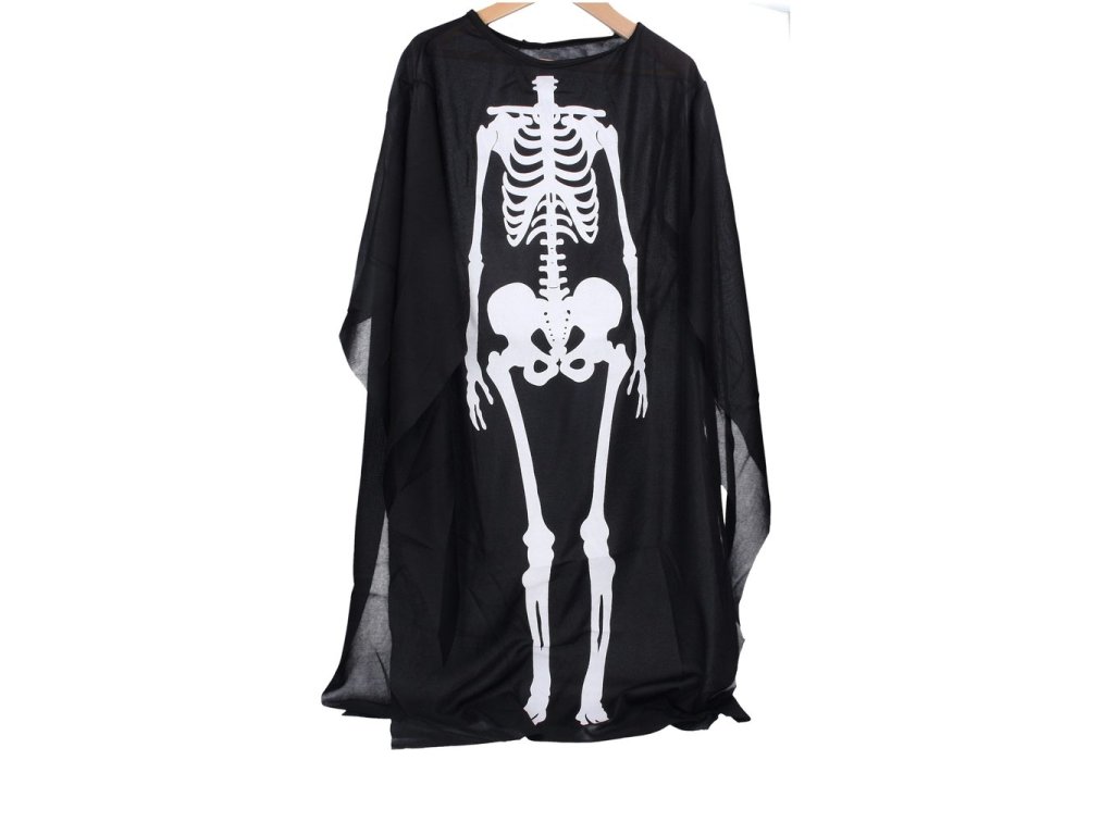 Černý plášť s kostrou bude skvělým doplňkem na halloweenskou párty!