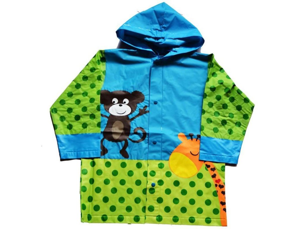 Dětská pláštěnka Pidilidi s motivem opice. Pláštěnky jsou vyrobeny z měkčeného PVC, ale přitom jsou pevné.
