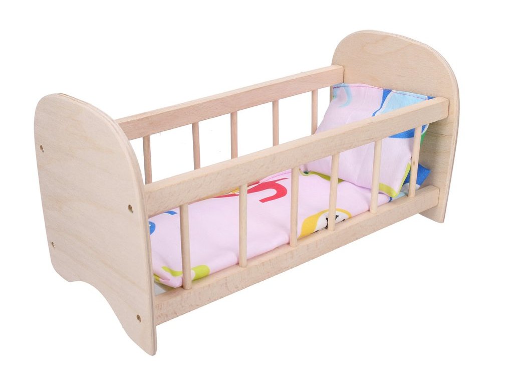 Dřevěná postýlka je ideálním pomocníkem každé malé maminky, stačí přidat nadýchané peřinky a miminko uložit ke spánku.