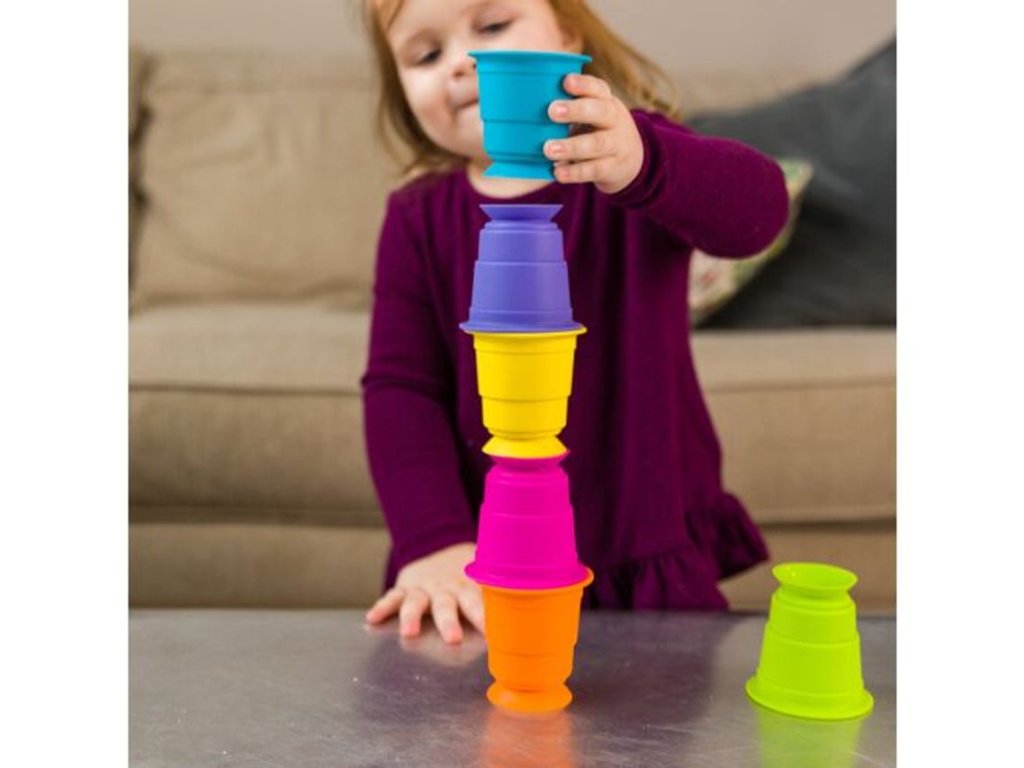 Kelímky májí funkci přísavky, které drží pohromadě a nebo přilne na libovolný hladký povrch. Má jasné, zářivé barvy které stimulují oči. Lze je skládat.