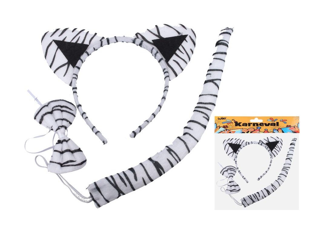 Tato karnevalová sada obsahuje: čelenku, ocas a motýlek