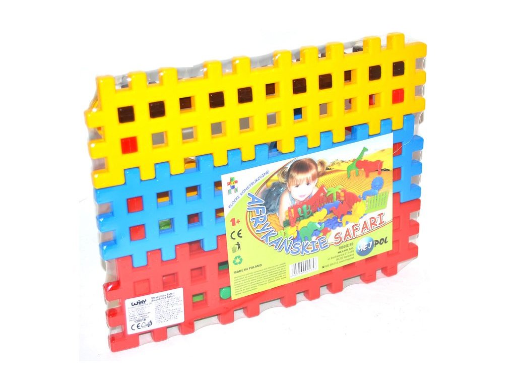 Balení obsahuje plastové komponenty k sestavení barevného safari včetně zvířátek.