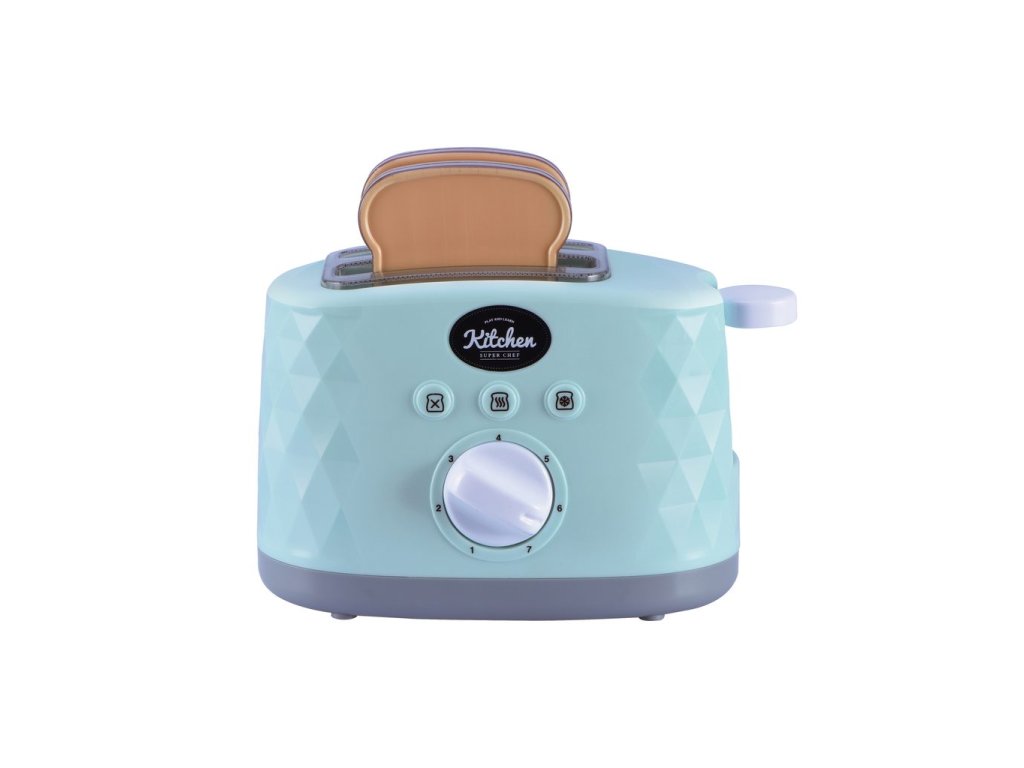 Na toustovači můžeš nastavit stupeň teploty, opékání spustíš stlačením přepínače na pravé straně. Celá příprava toustíků bude také doprovázena zvukovými efekty!