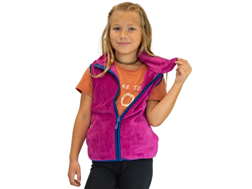 Stylová a pohodlná dětská vesta, která je ideální pro chladnější dny. Díky měkkému CORAL fleece materiálu je vesta nejen příjemně hřejivá, ale také velmi pohodlná. Praktický stojací límec chrání krk před chladem, zatímco dvě kapsy poskytují prostor pro malé předměty. Barevné kontrastní lemy dodávají vestě moderní a hravý vzhled, který potěší každé dítě.