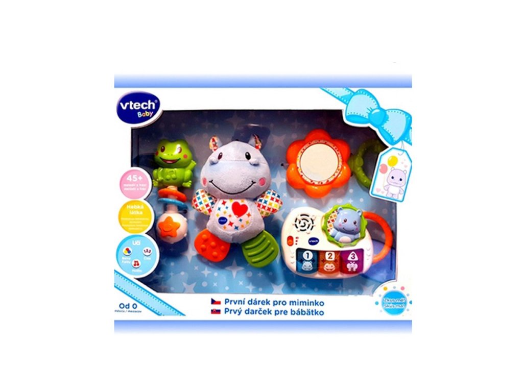 První dárek pro miminko od VTech® je jedinečný soubor hraček pro právě narozené miminko, které mu v prvních měsících jeho života budou přinášet spoustu radosti i poznání.